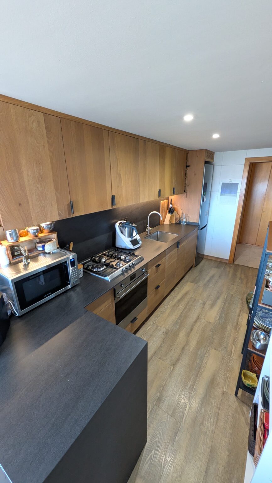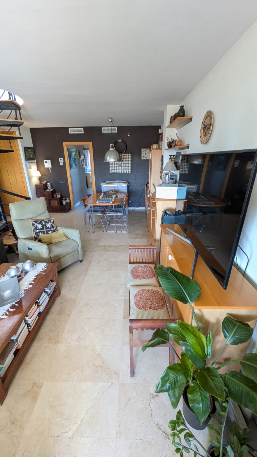 Al entrar, un salón-comedor amplio y luminoso da la bienvenida con salida directa a la terraza principal, perfecta para disfrutar de la brisa marina y los atardeceres. La cocina, completamente reformada con materiales de primera calidad, destaca por su estilo elegante y funcional, con una mesa junto a la ventana para desayunar contemplando el mar y acceso directo a la terraza. En la zona de noche encontramos un baño completo con bañera, una habitación individual, otra doble con armario empotrado, y la suite principal, con baño privado totalmente renovado y salida a un balcón posterior que aporta calma y privacidad.